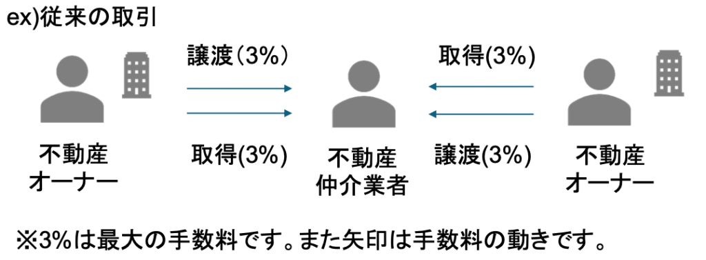 3%×4取引=合計12%の手数料の獲得機会があるため、既存の不動産仲介業者が情報を握り込む要因。