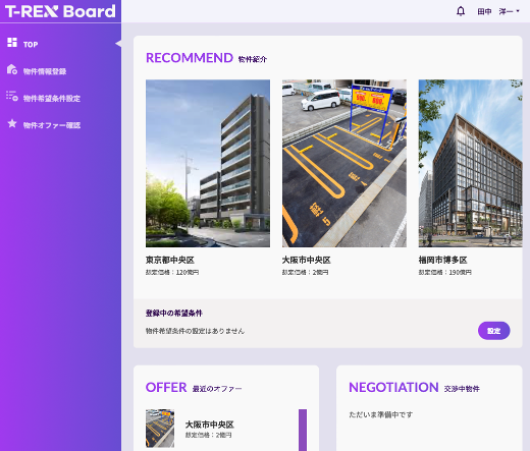 「T-REXボード」は不動産の交換売買に特化したプラットフォームとして、弊社が開発中のサービスです。