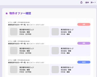 ・希望条件にマッチする物件情報を「物件オファー」画面に確認。興味のある物件があった場合にオファーを応諾して頂きます。